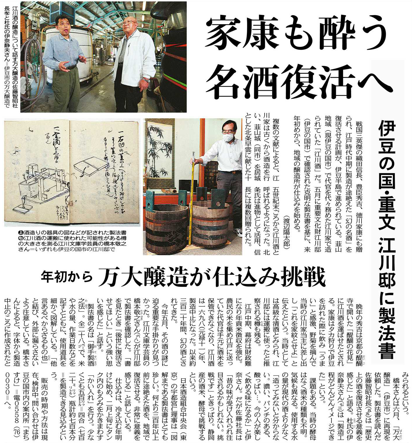 江戸時代に途絶えたとされる「江川酒」の醸造に万大醸造がチャレンジ!